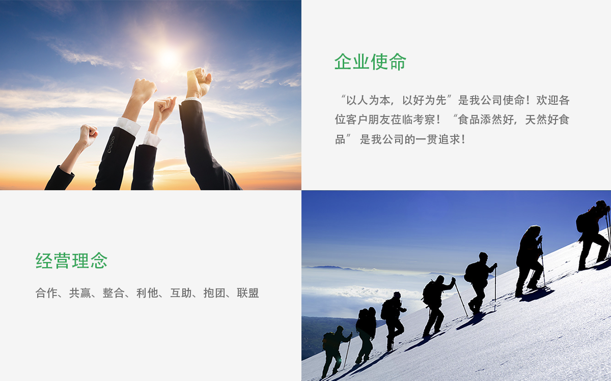 企業(yè)使命:“以人為本,以好為先”是我公司使命!歡迎各位客戶朋友蒞臨考察!“食品天然好,添然好食品” 是我公司的一貫追求!